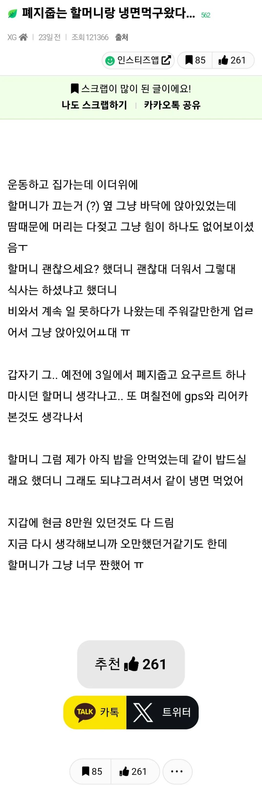폐지줍는 할머니랑 냉면먹구왔다… 0