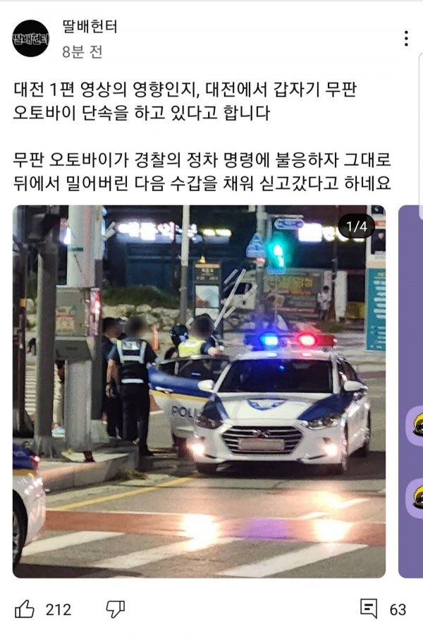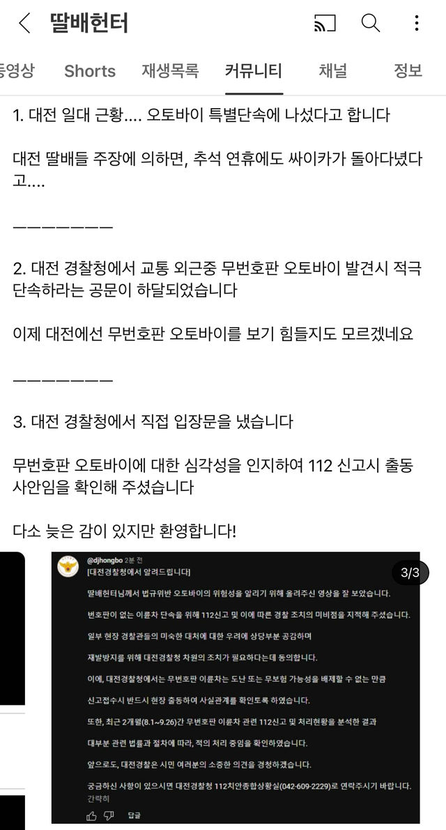 | Subject | 대전 무번호판 단속 근황.feat딸배헌터. |
