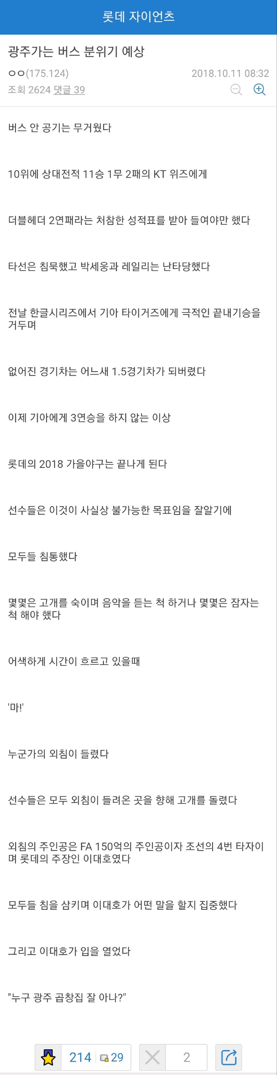 | Subject | 광주가는 버스 분위기 예상 -롯데 자이언츠 갤러리 |