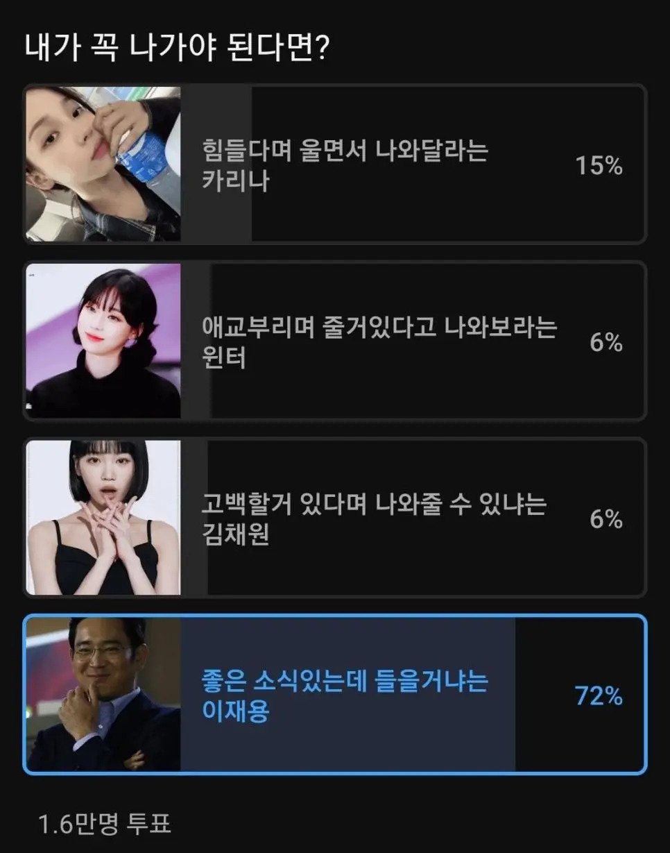 | Subject | 카리나,윈터,채원이 와도 못이기는 사람 |