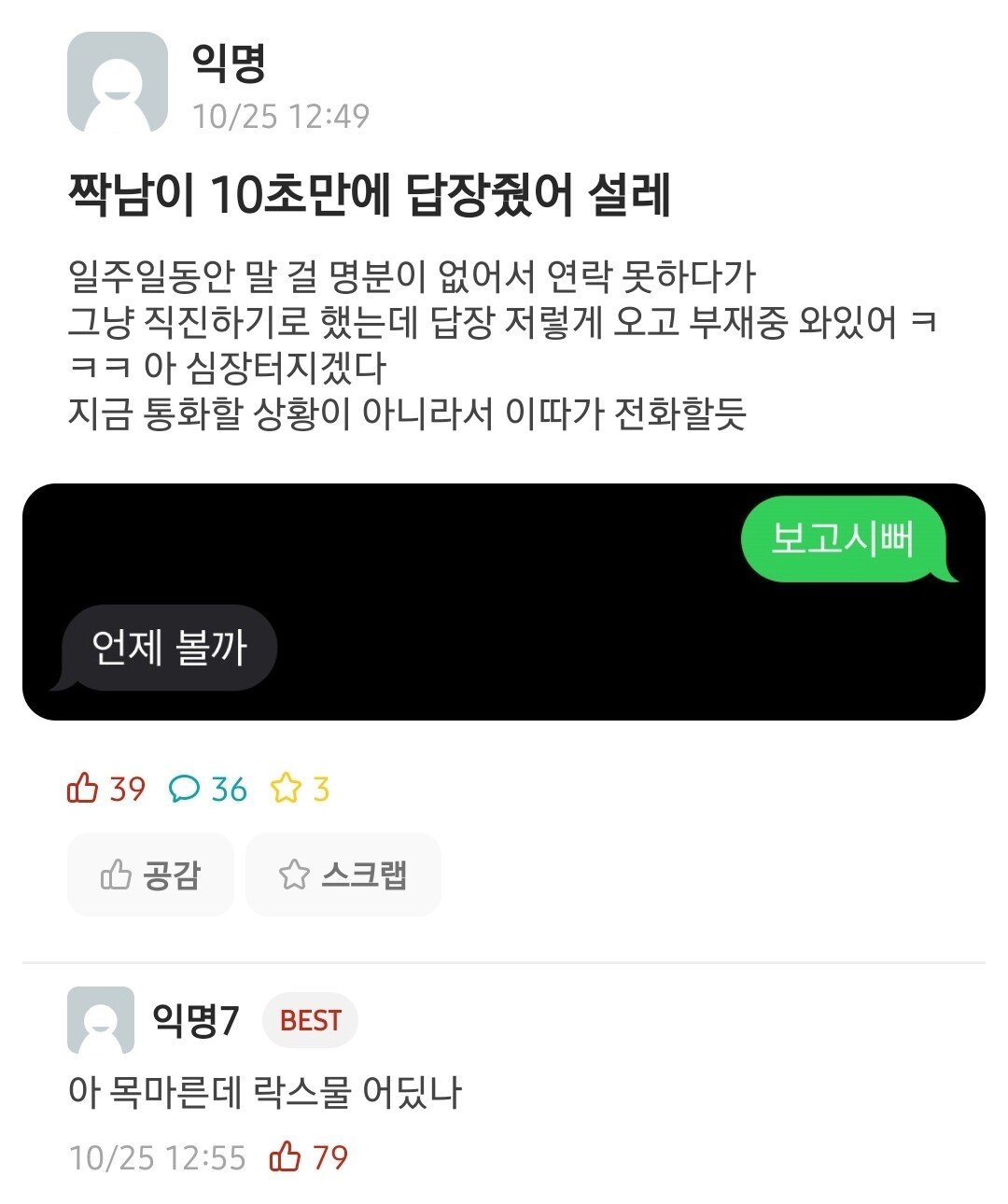 64154 짝남이 10초만에 답장줬어 swear 23/10/26 5180 1