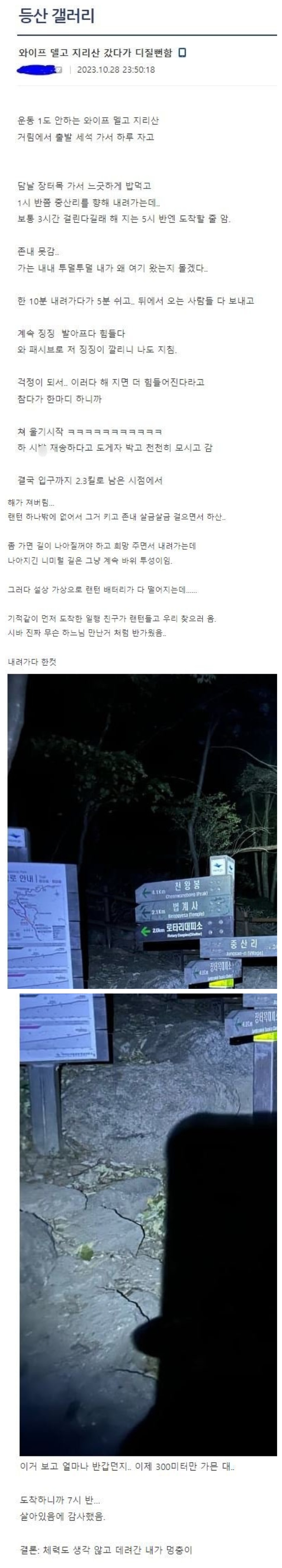 Subject   운동 안하는 와이프 산에 델고 갔다 죽을뻔했다