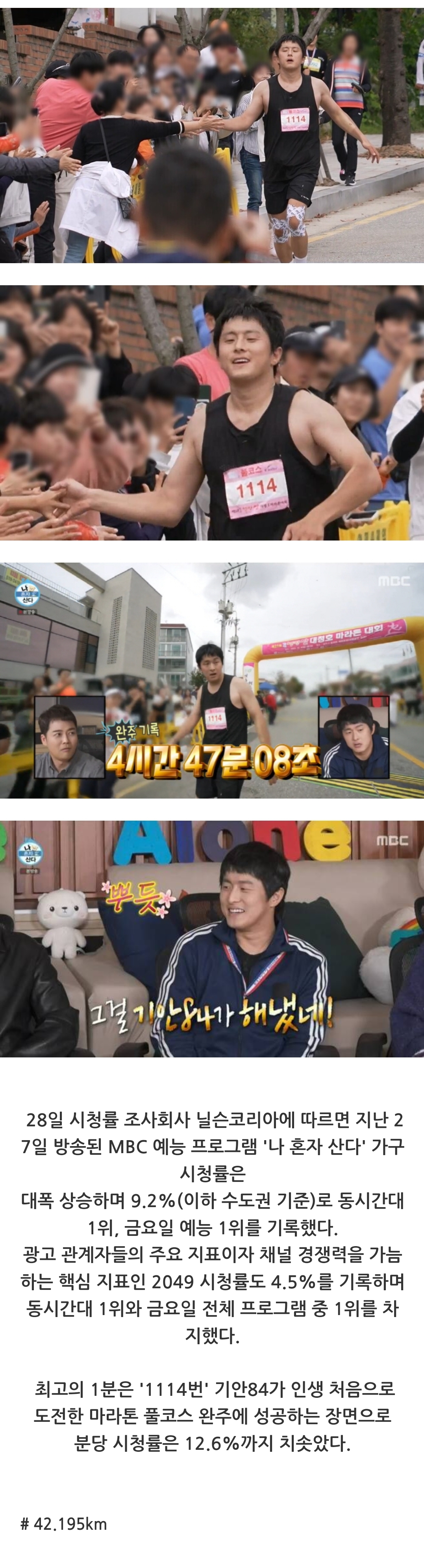마라톤 풀코스 완주 기안84 나 혼자 산다 시청률 0