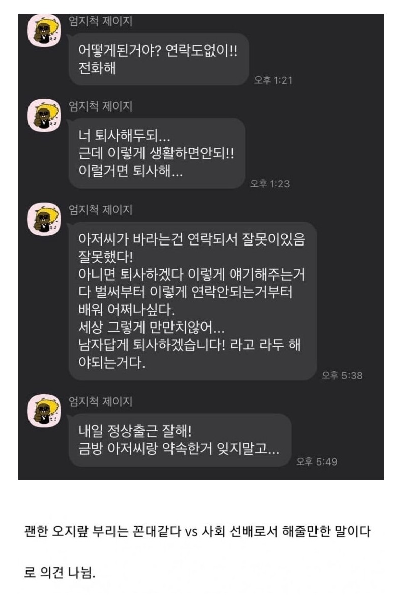 일용직 말도 없이 그만 두자 온 카톡