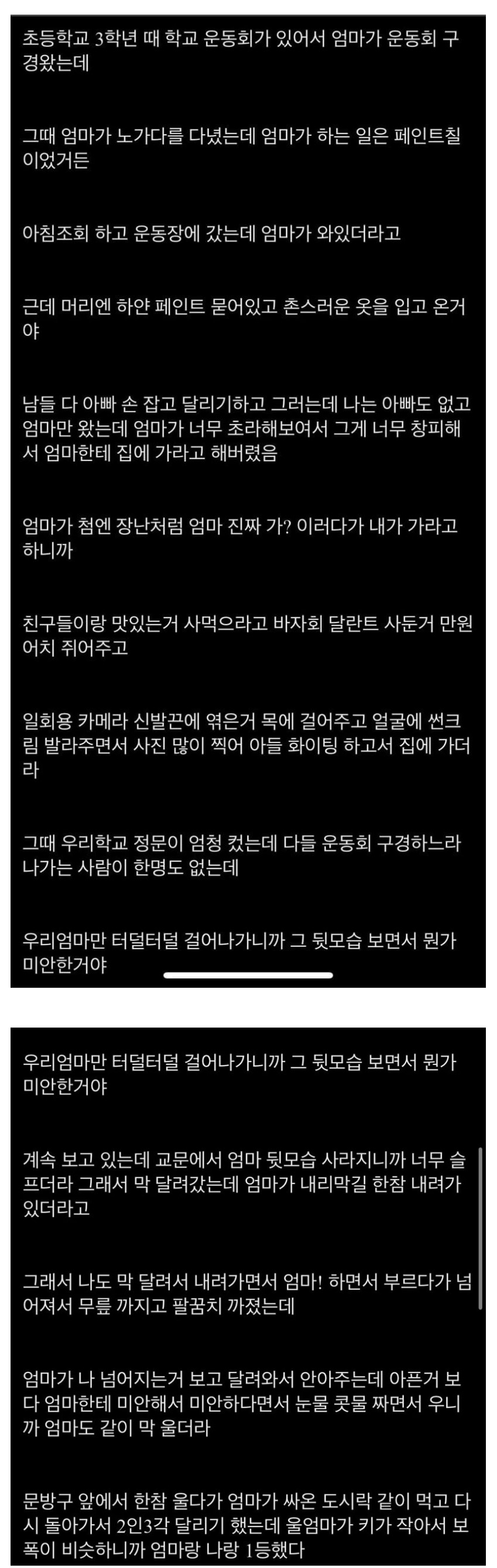 | Subject | 운동회 온 엄마가 창피했던 아들.jpg |