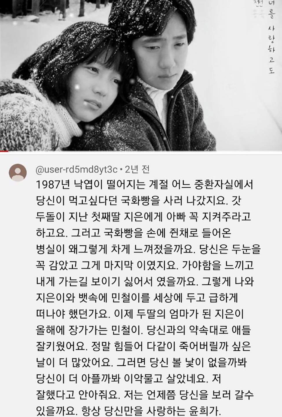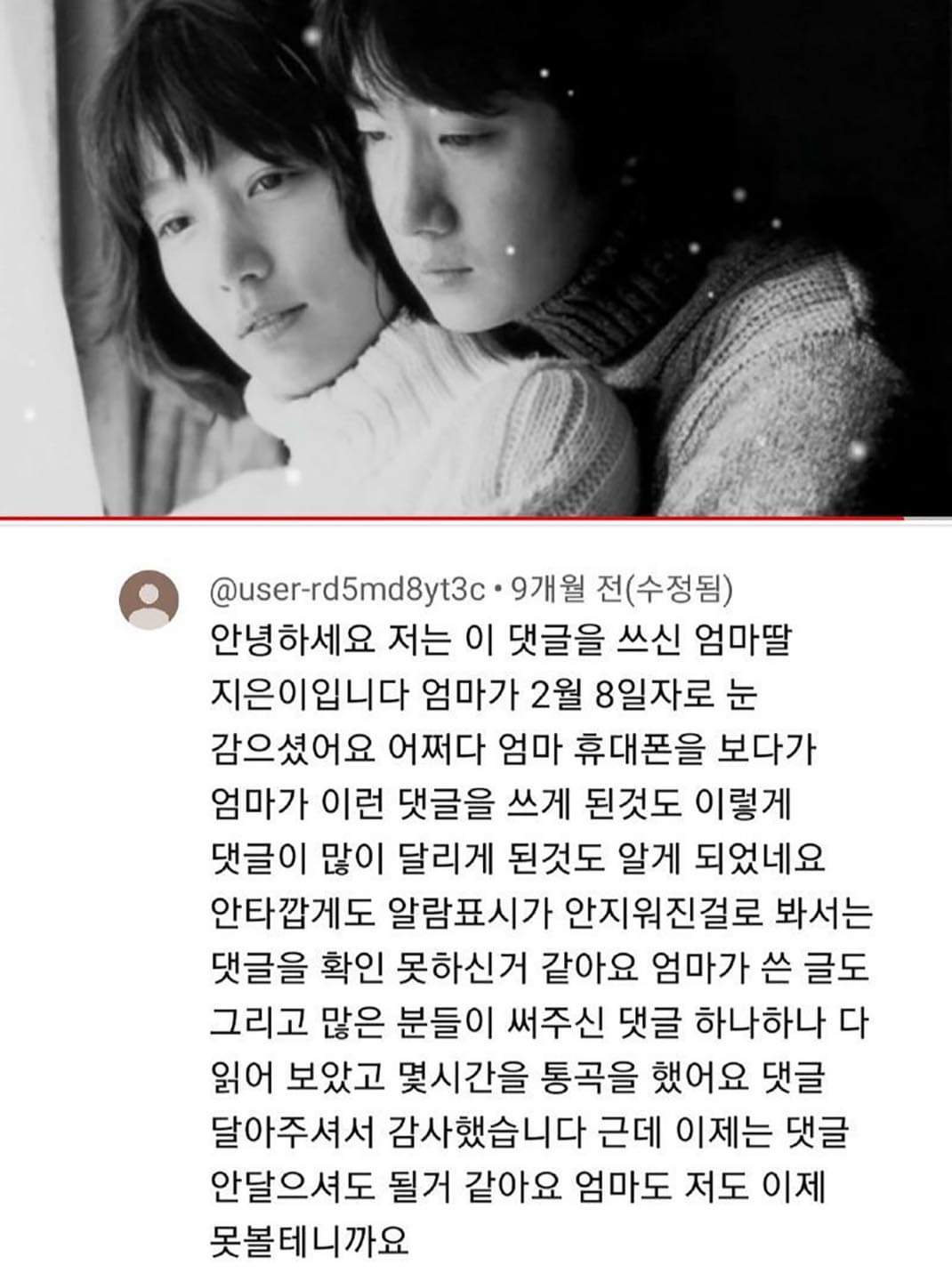 | Subject | 남편을 그리워하는 엄마가 쓴 유튜브 댓글 |