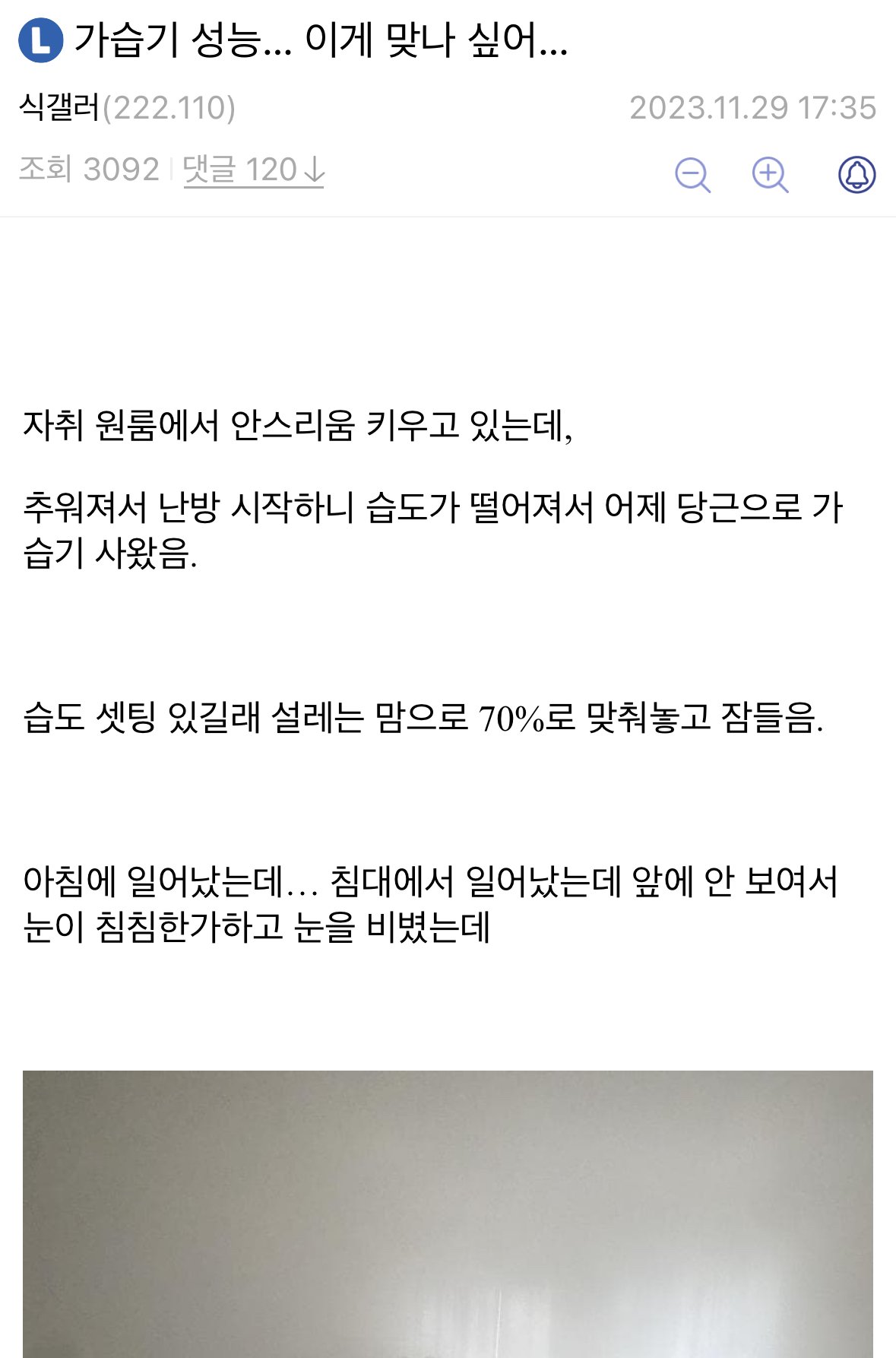 | Subject | 가습기 성능…이게 맞나 싶어… |