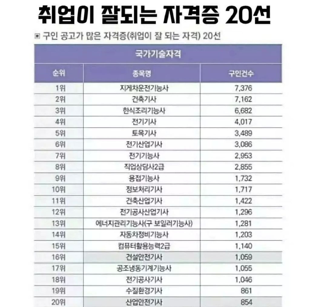64577 취업이 잘되는 자격증 20선.jpg 2 김치찌개 23/12/10 4283 0