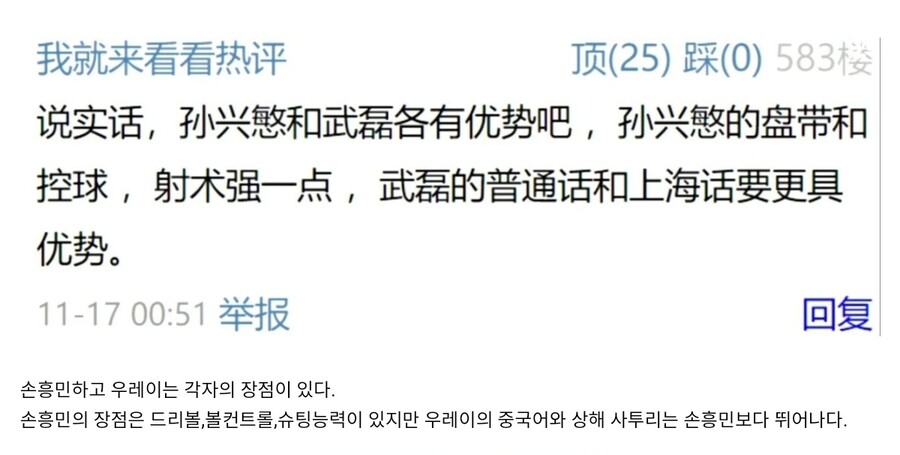 어느 중국인이 말하는 우레이가 손흥민보다 뛰어난점 1