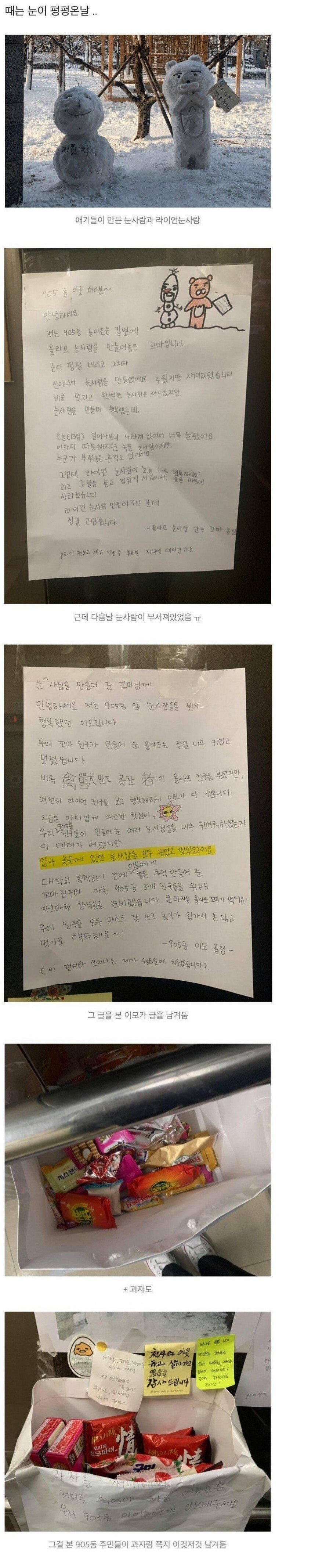 | Subject | 어린이가 만든 눈사람 부순 아파트 결말 |