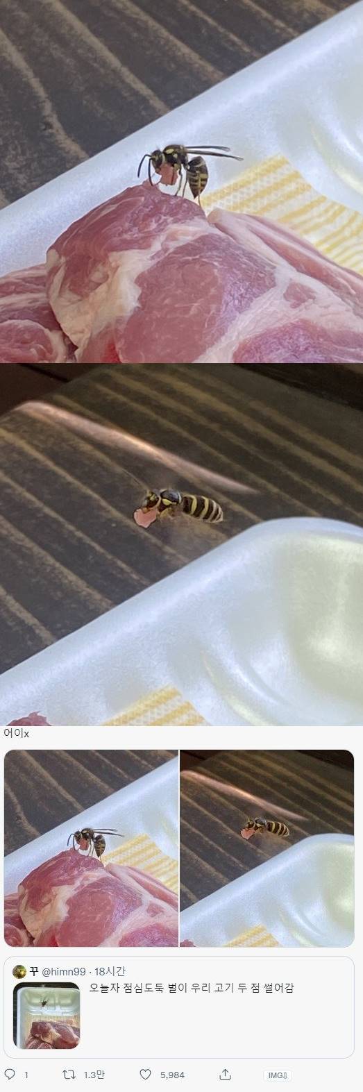 | Subject | 아니 벌이 와서 고기 썰어갔어요 진짜예요 |