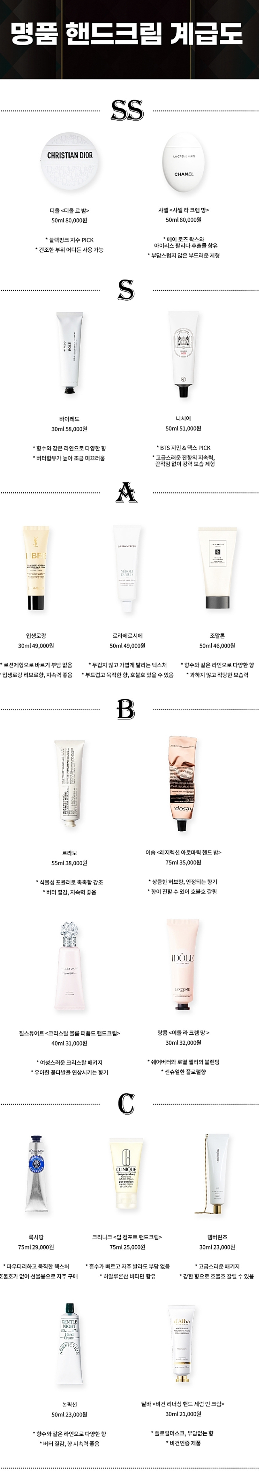명품 핸드크림 계급도 1