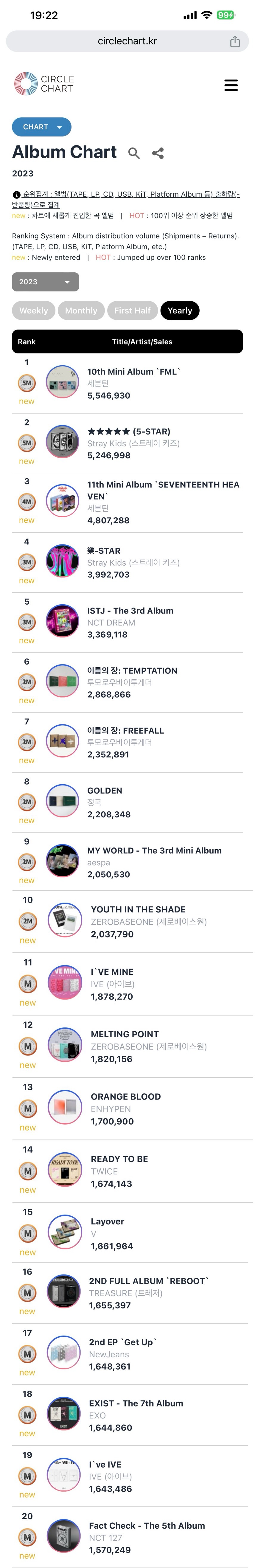 | Subject | 2023 K팝 앨범 판매량 탑20. |