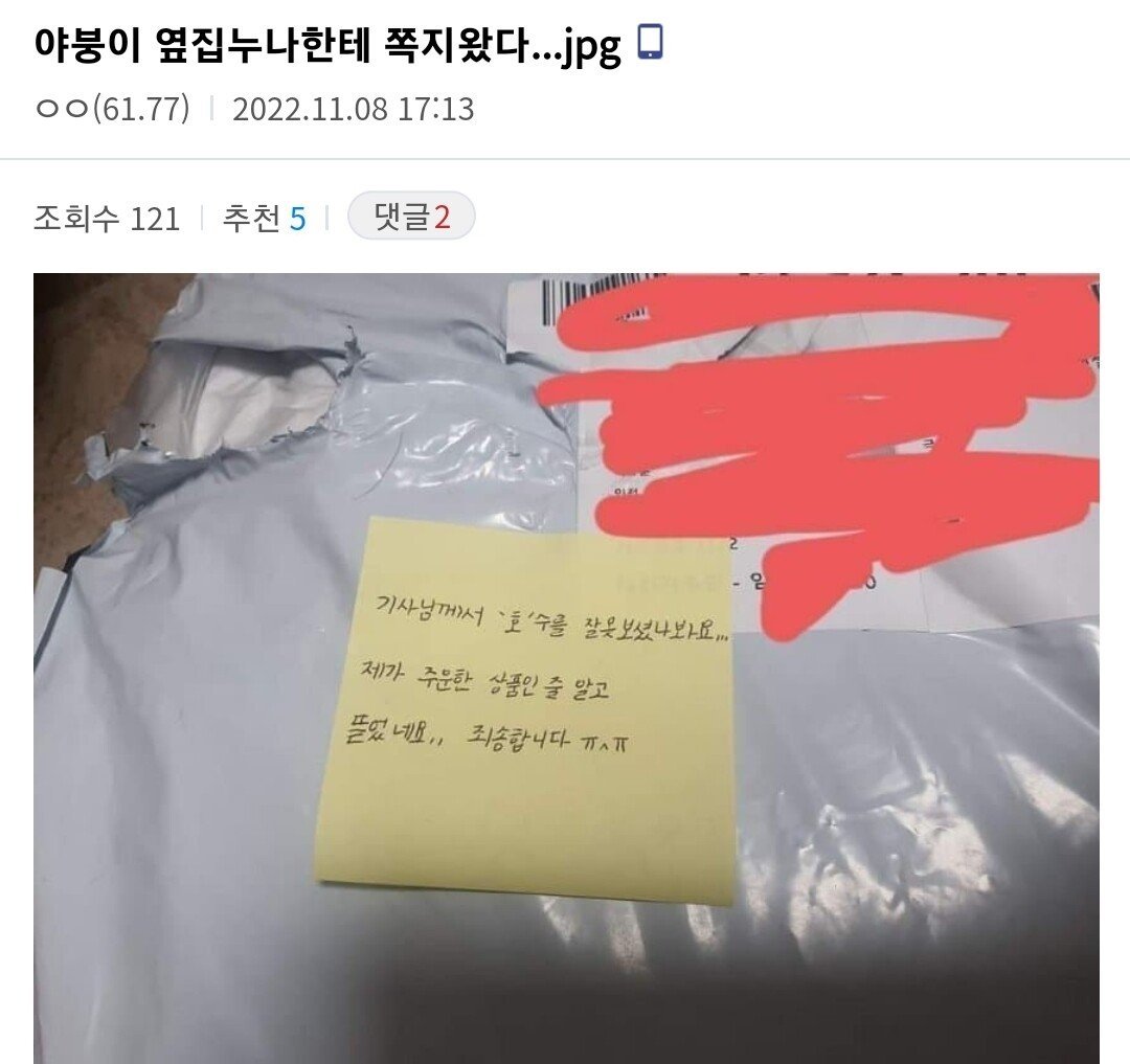 | Subject | 옆집누나한테 쪽지왔다… |