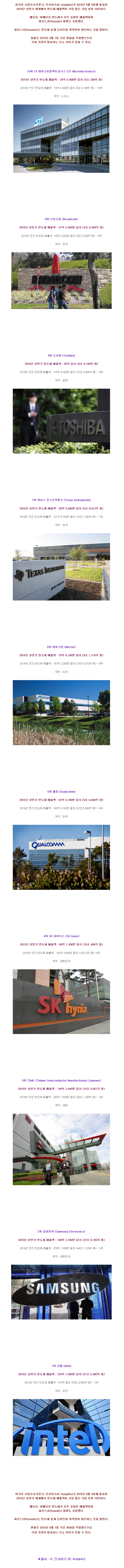 Subject   2015년 상반기 반도체 매출이 가장 높은 세계 기업 Top10