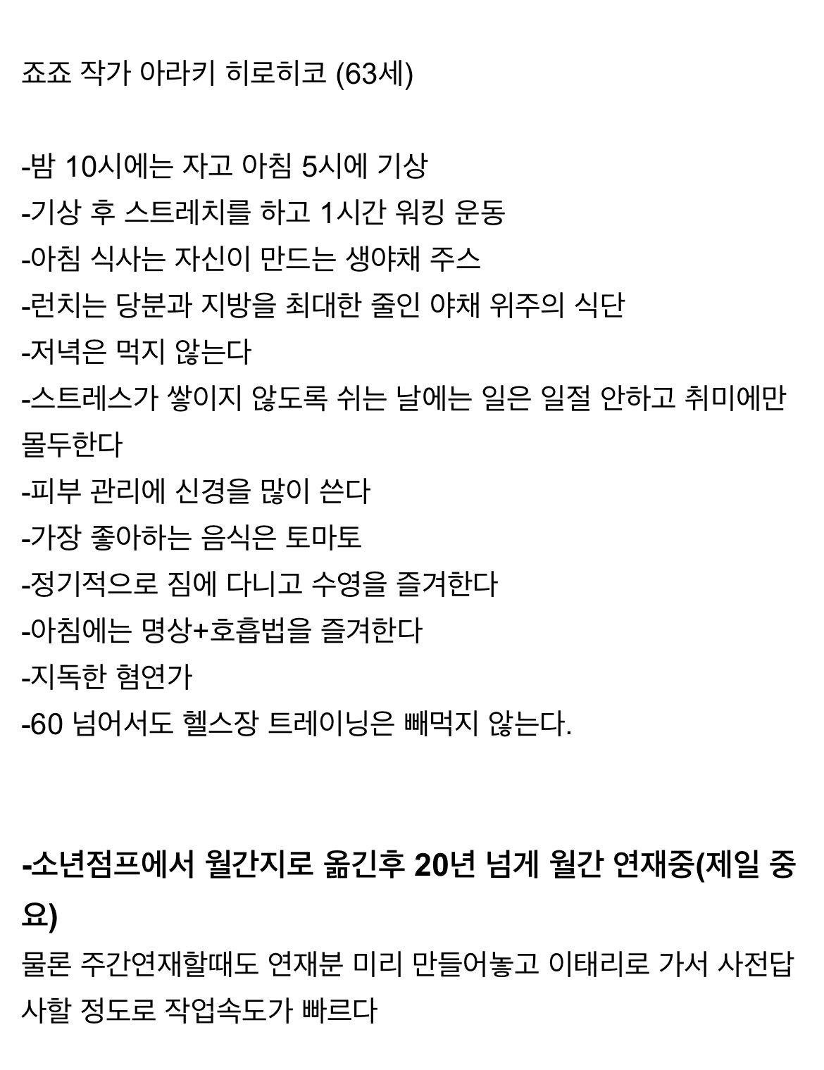 | Subject | 죠죠 작가의 건강 관리법 |
