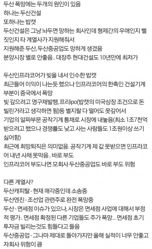 | Subject | 두산 그룹의 현 상황 From DC 주갤(?) |