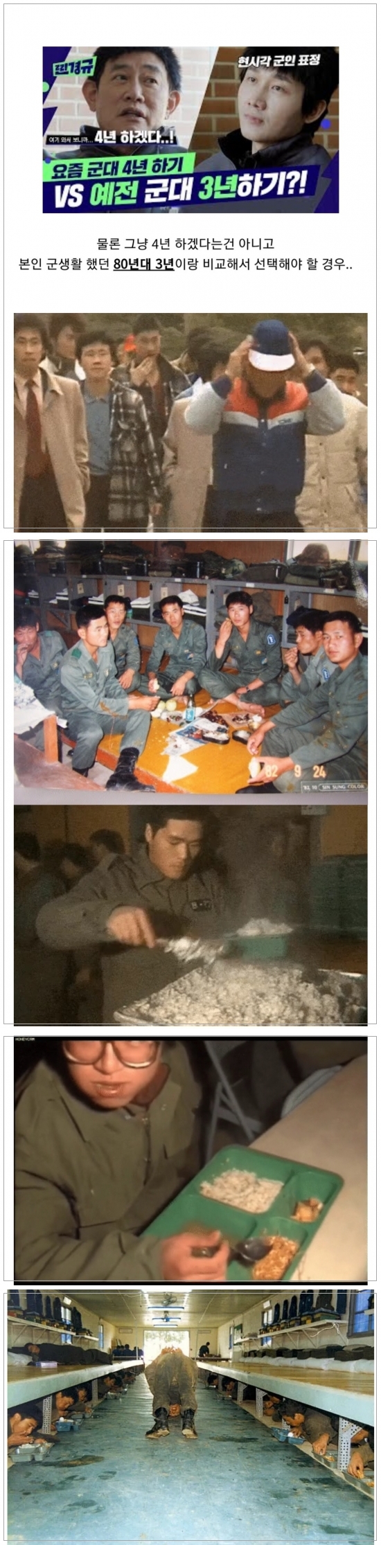 80년대가 아니라 90년대라도 무조건 요즘 4년 선택할거 같은데요. 그 당시면 구타+욕설은 기본 패시브인데…거기에 3년이면.. 한 1년반이나 1년은 되야 고민이라도 되지 않을까 싶네요. 0