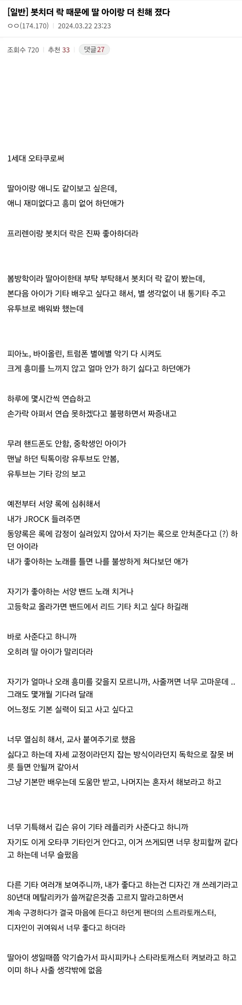 Subject   봇치더락 때문에 딸아이랑 친해졌다