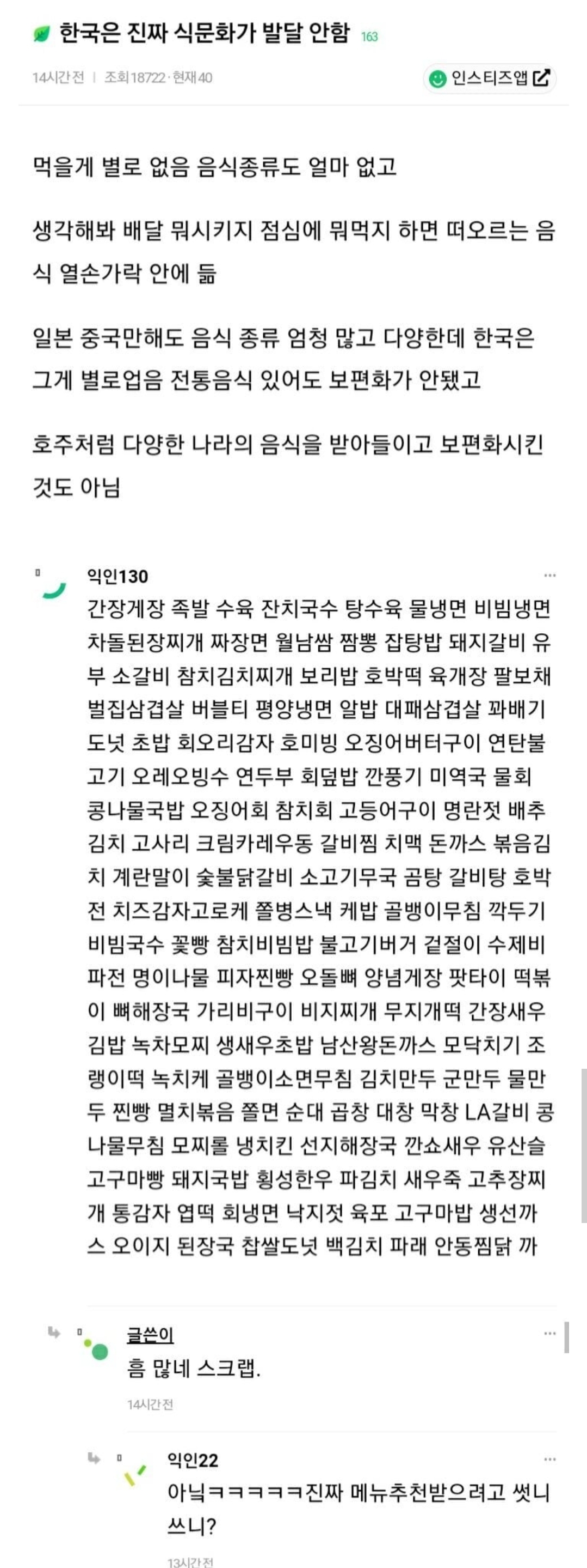 Subject   한국은 진짜 식문화가 발달 안함