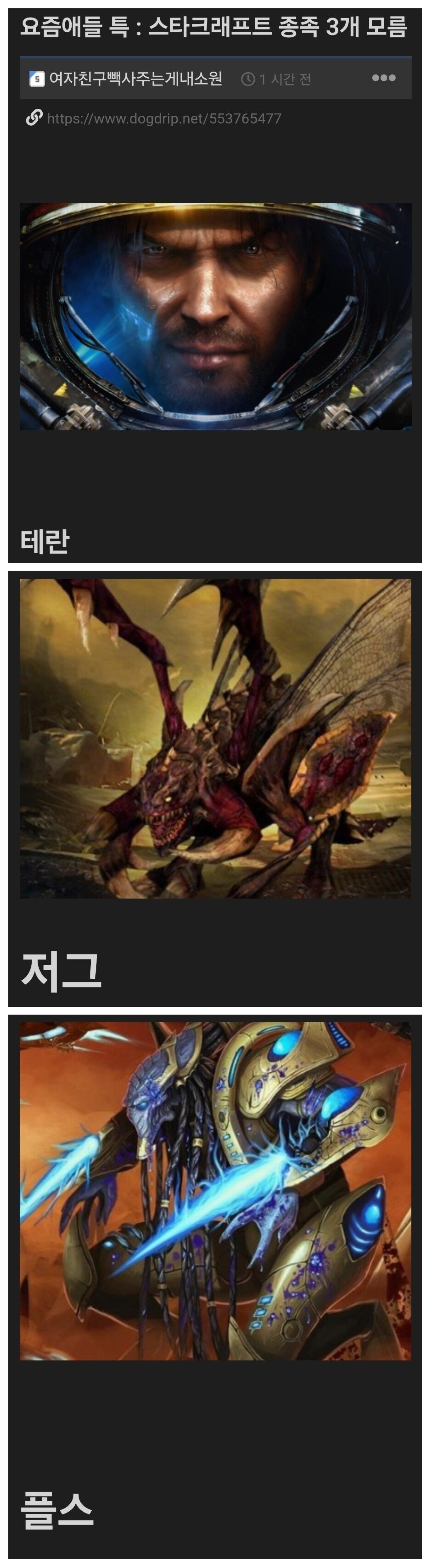 Subject   요즘 애들은 스타크래프트 종족 모름