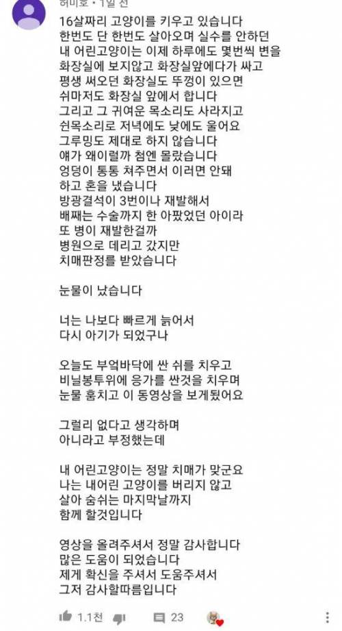 | Subject | 18세 치매고양이의 하루에 달린 댓글 |