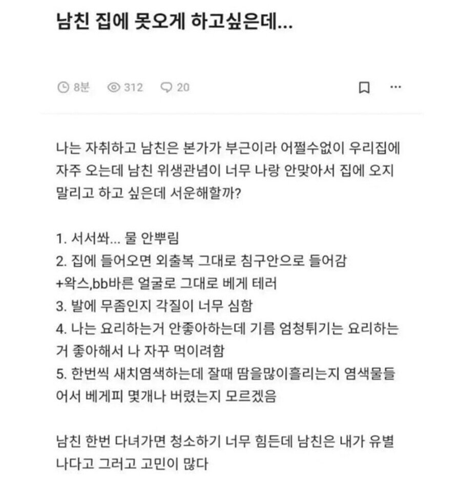 Subject   남친 집에 못오게 하고 싶은데…