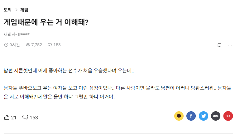 - 유머가 아닌 펌글, 영상 등 가볍게 볼 수 있는 글들도 게시가 가능합니다.