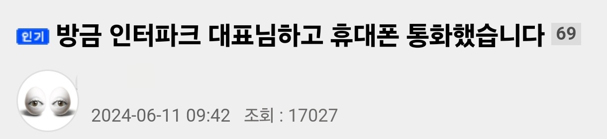 | Subject | 방금 인터파크 대표님하고 통화했습니다 |