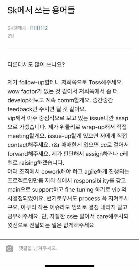 | Subject | sk텔레콤에서 쓰는 후덜덜한 영어수준.jpg |