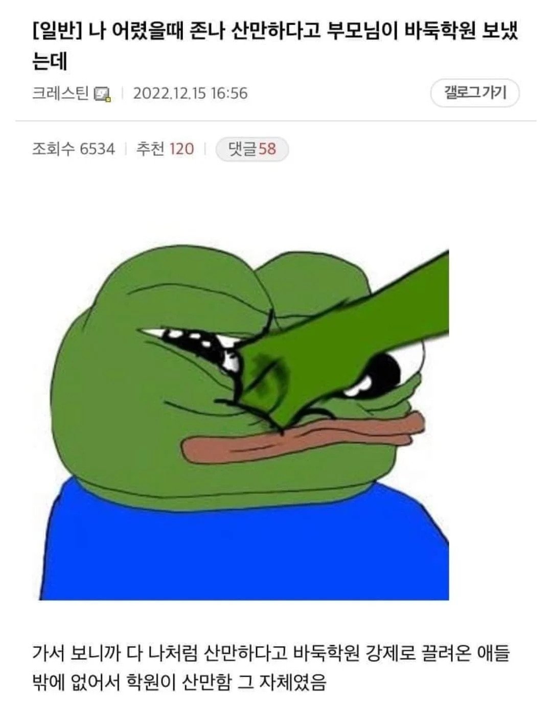 | Subject | 나 어렸을 때 산만하다고 부모님이 바둑학원 보냈는데 |