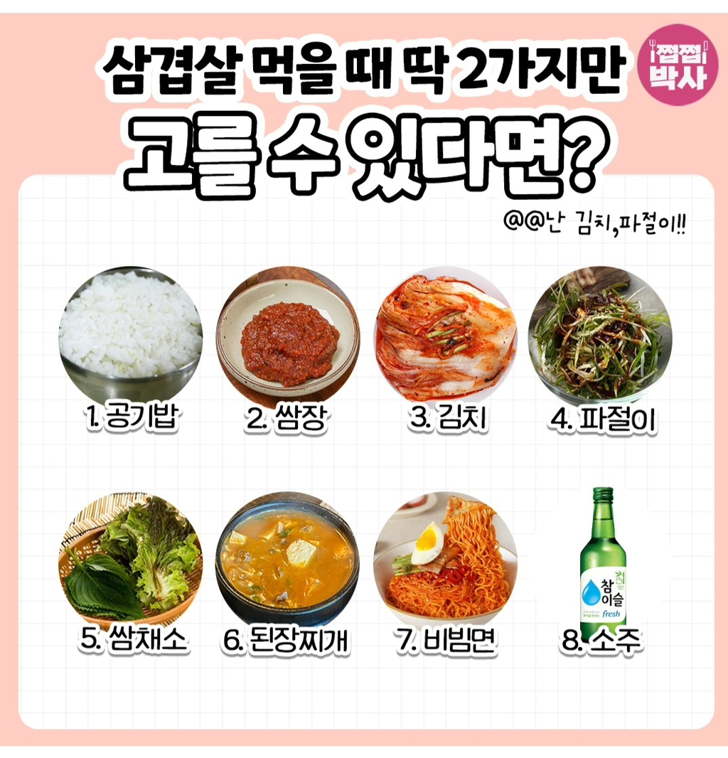 | Subject | 삼겹살 먹을 때 딱 2가지만 고를 수 있다면?.jpg |