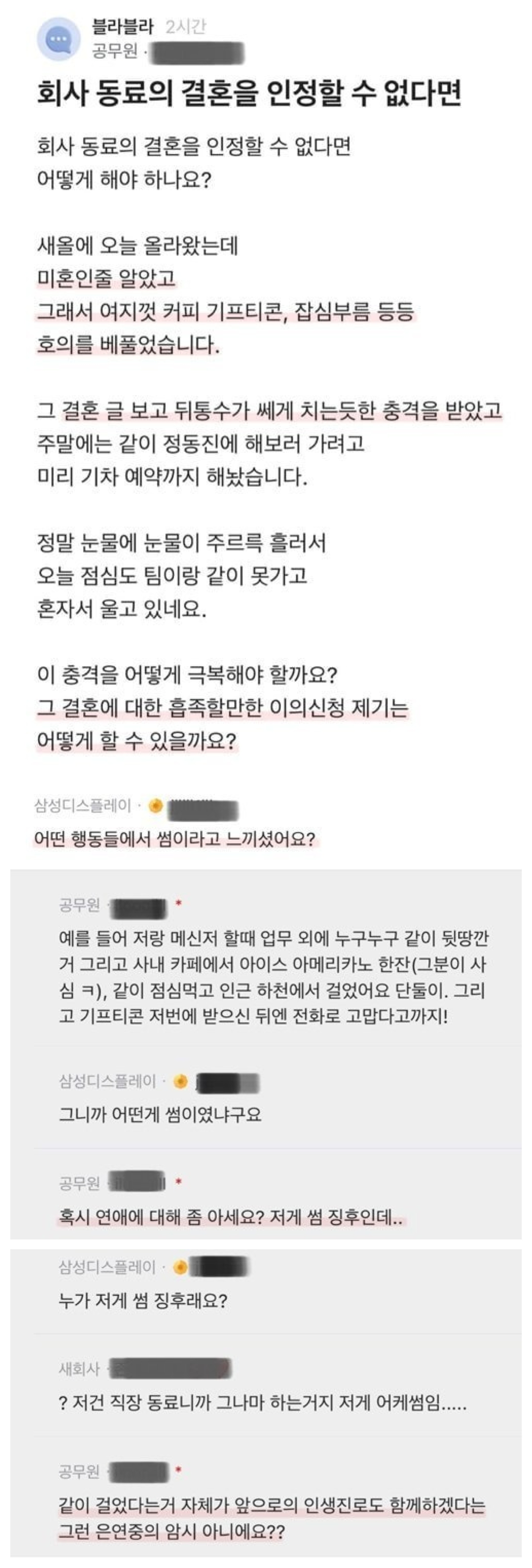 Subject   회사 동료의 결혼을 인정할 수 없습니다