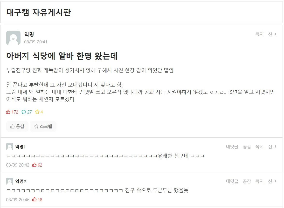 Subject   아버지 식당에 알바가 한 명 왔는데..