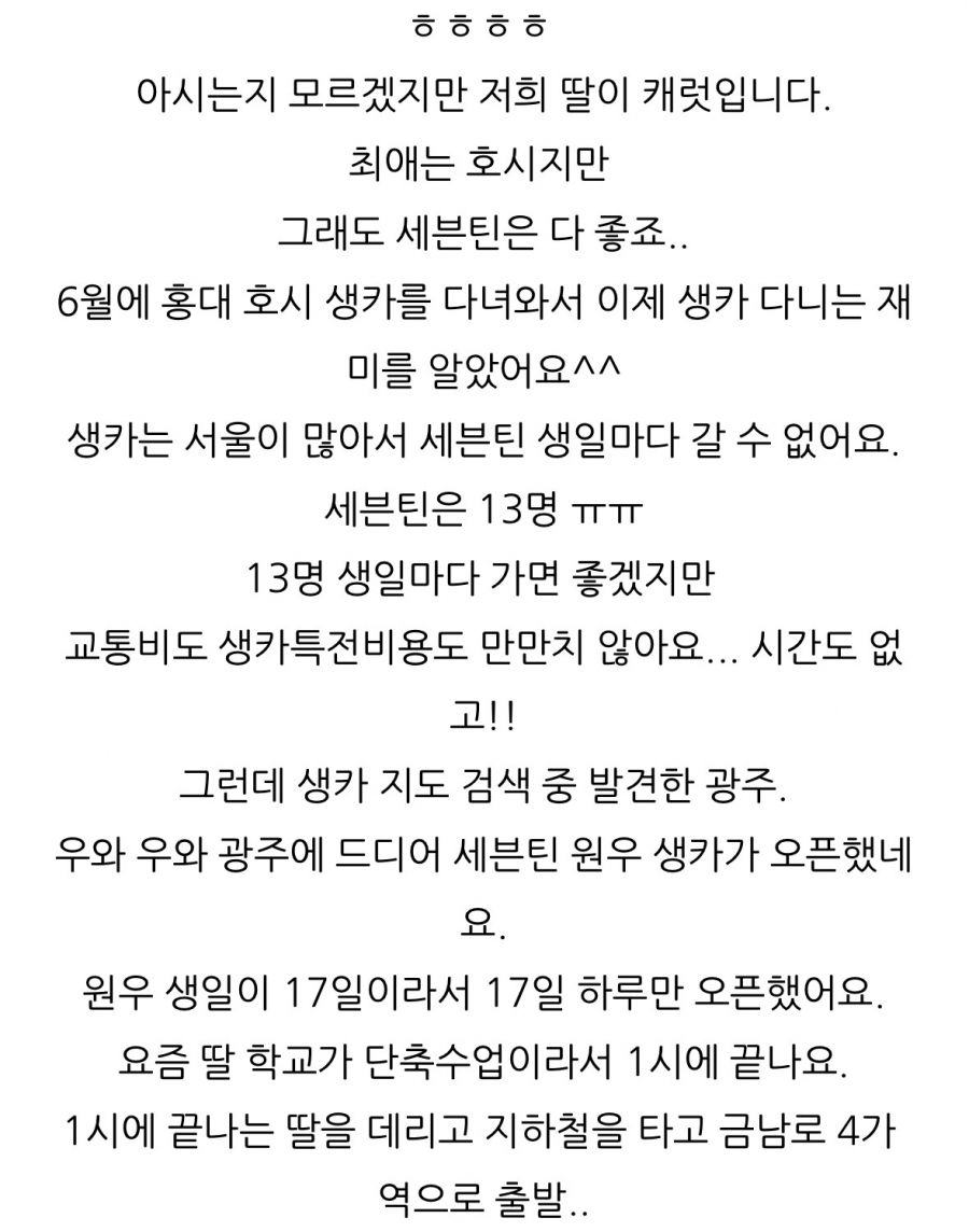Subject   딸이 세븐틴을 좋아하는데 엄마인 제가 더 즐거운 이유는 뭘까요?