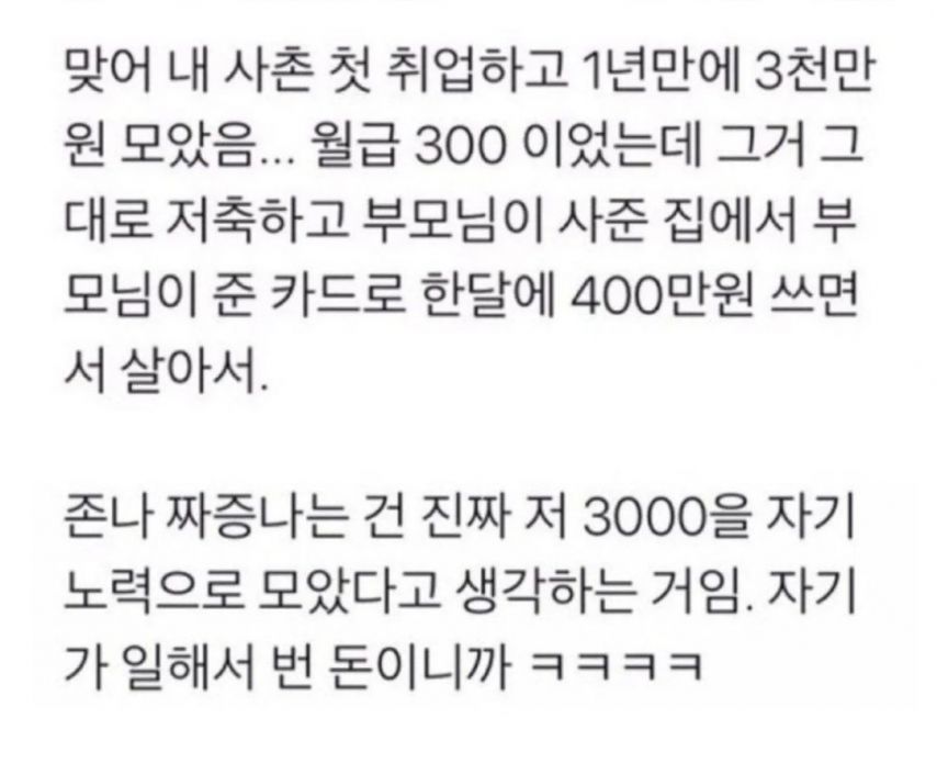 ㅋㅋㅋ거기다 조금 있으면 증여로 아파트 받음 ㅋㅋ