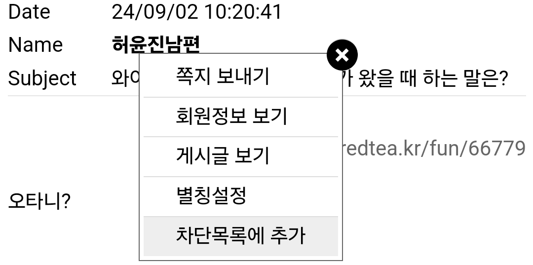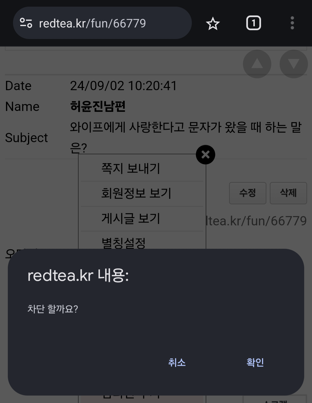 | Subject | 와이프에게 사랑한다고 문자가 왔을 때 하는 말은? |