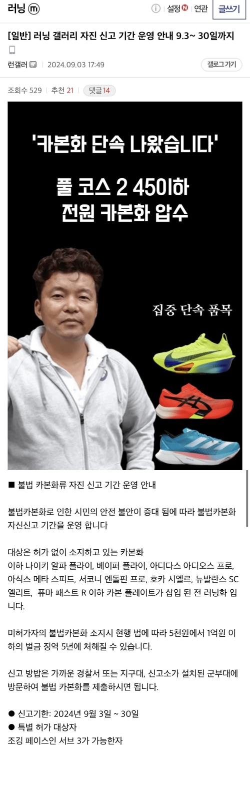 위 기사에도 나와았지만, 카본화는 부상을 잘 일으킵니다.
