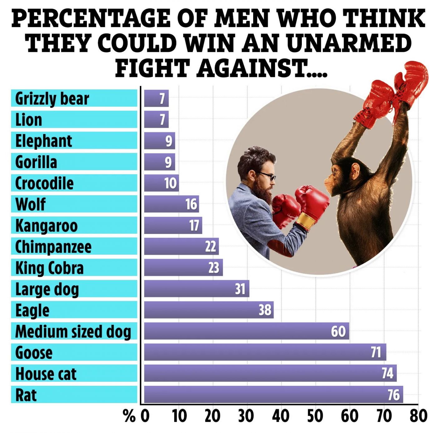 | Subject | 동물별 인간이 무기없이 일대일 맨몸 격투로 이길 수 있다고 생각하는 비율.jpg |