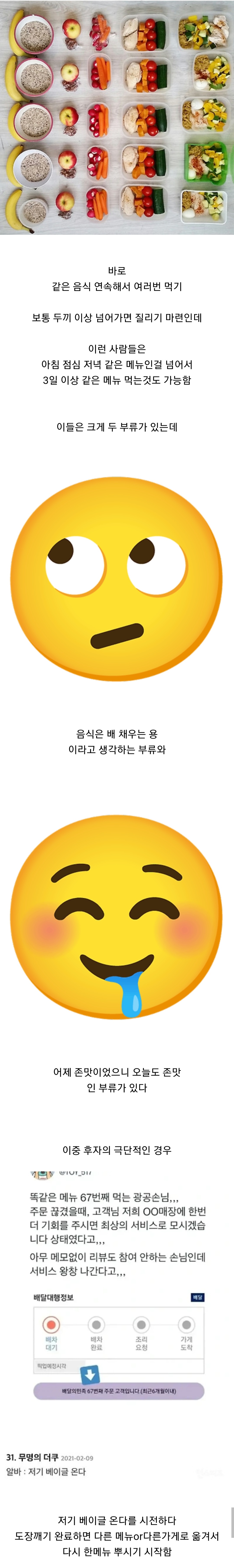 저는 같은 메뉴 맥시멈 이틀까지 가능합니다. 그 이상은 넘나 지겨운 것… 0