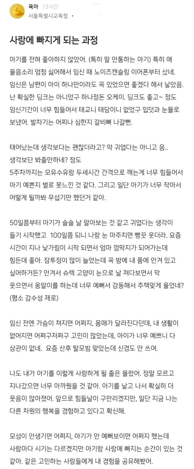 저희 부부도 애 생기면 낳고 아니면 그냥 살자 이런 마인드였어서 공감이 갑니다. 결혼하고 나서도 애기들 별로 안좋아하던 와이프가 지나가는 애기만 봐도 웃음 짓는거 보면 참 사람 많이 바뀌었다 싶습니다 ㅎㅎ