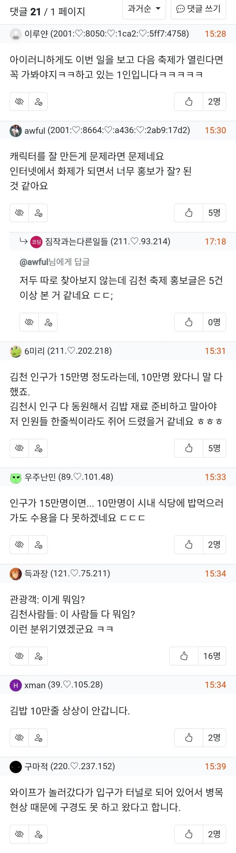 아니 인구가 15만인데 축제에 10만 올 걸 어떻게 예측하냐고 ㅋㅋㅋㅋㅋㅋ