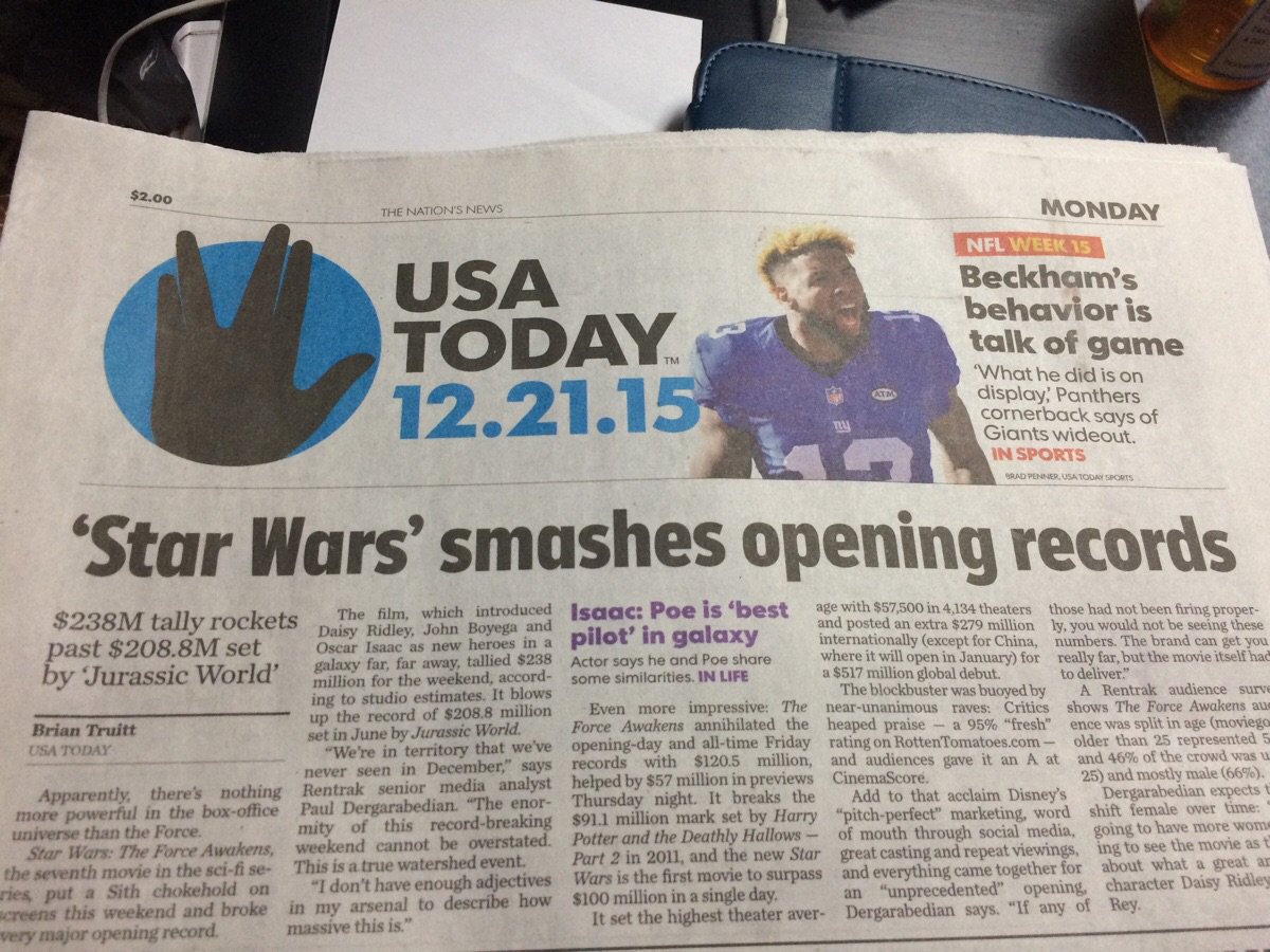 스타워즈 소식을 보내면서 스타 트렉의 상징인 벌컨식 인사법 사진을... 0