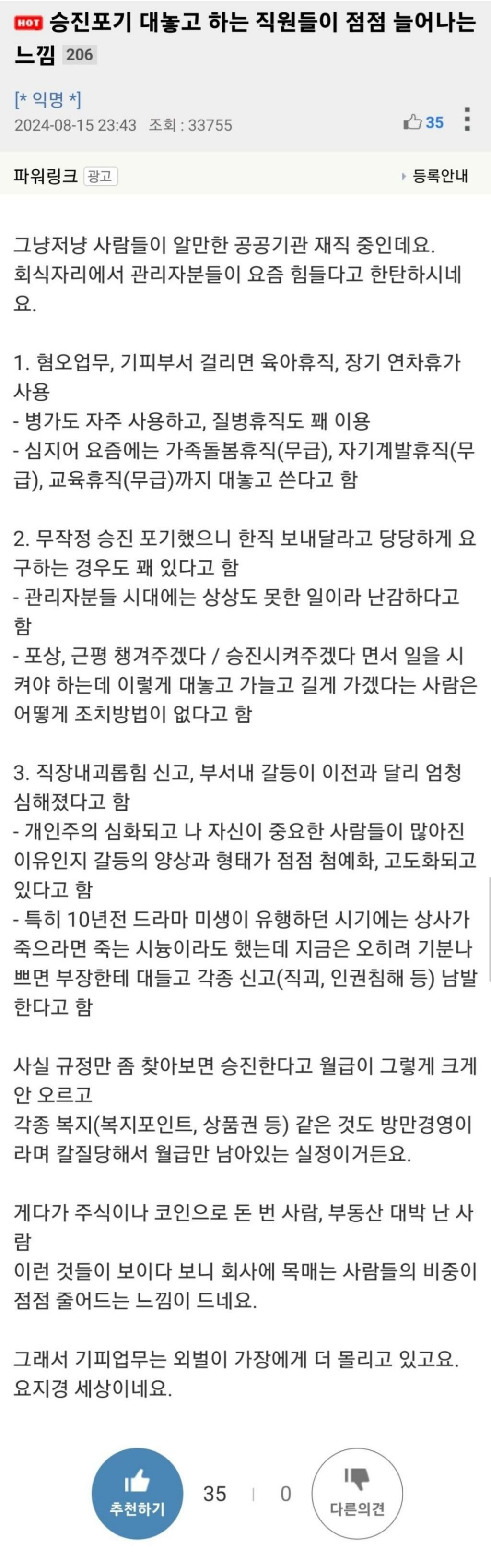 요즘 많은 회사에서 문제가 되고 있다는 현상 0