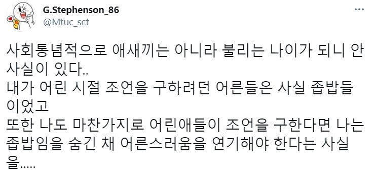 | Subject | 나이 먹는게 제일 무서운 점 |