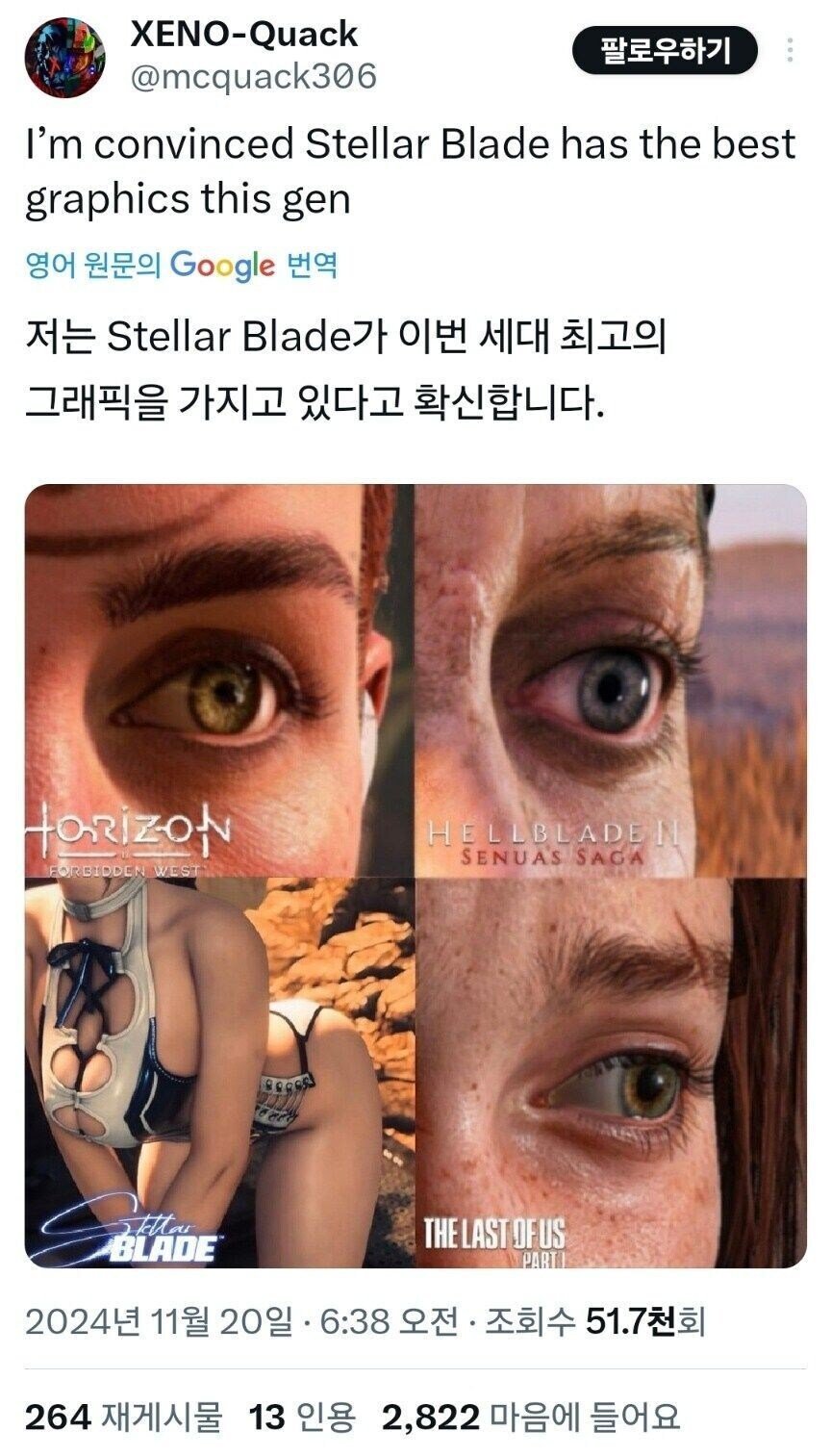 | Subject | 현 세대 최고 그래픽은 스텔라 블레이드다. |
