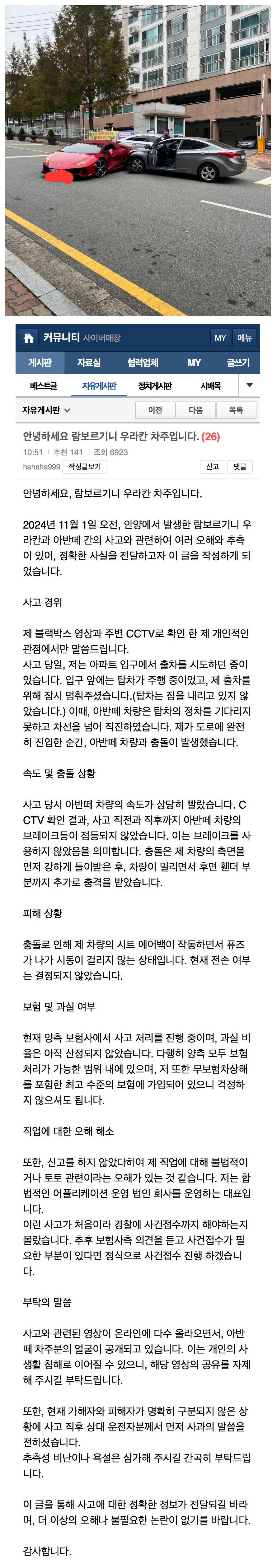 | Subject | 보배에 올라온 람보르기니 우라칸 차주 글.jpg |