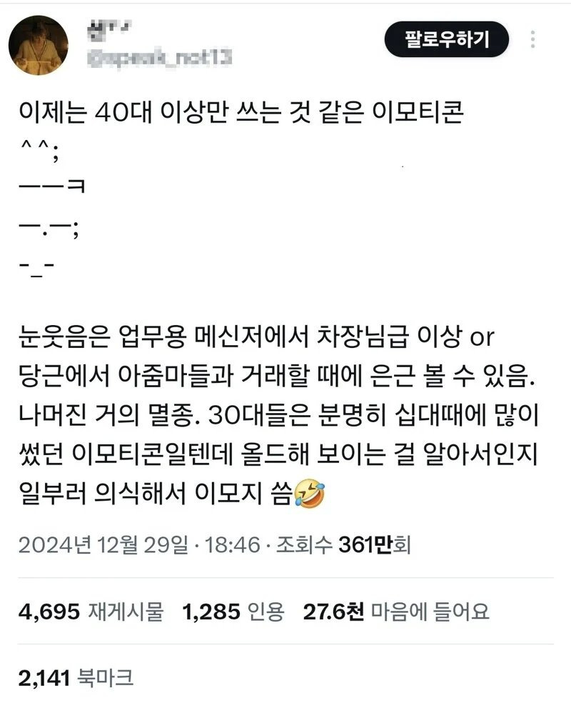 이제는 40대 이상만 쓰는 것 같은 이모티콘 0