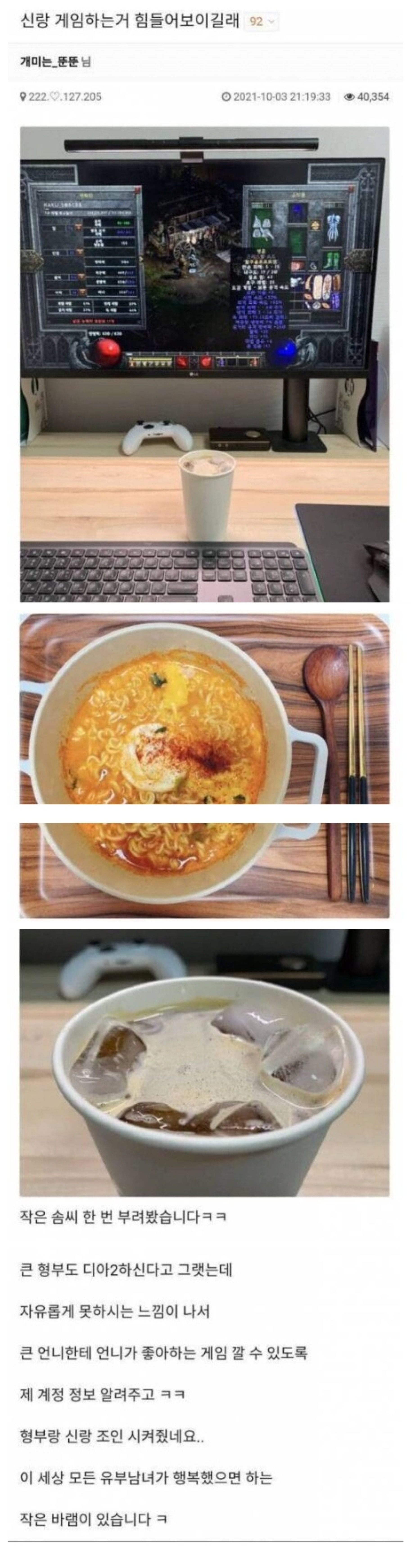 | Subject | 신랑 게임하는거 힘들어 보이길래.. |