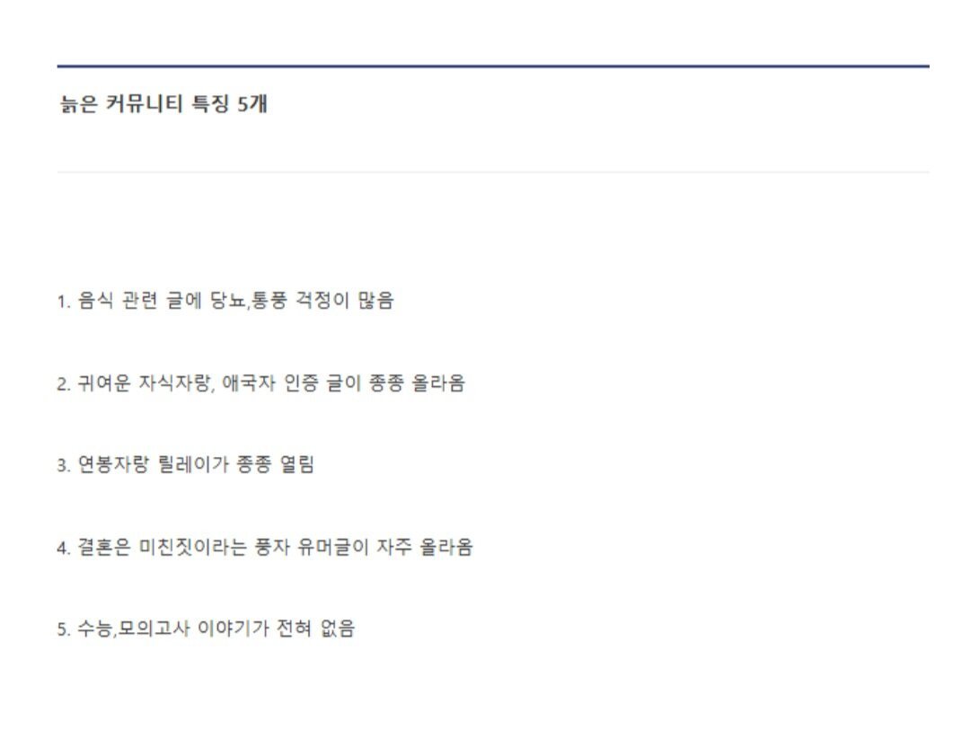 | Subject | 늙은 커뮤니티 특징 |